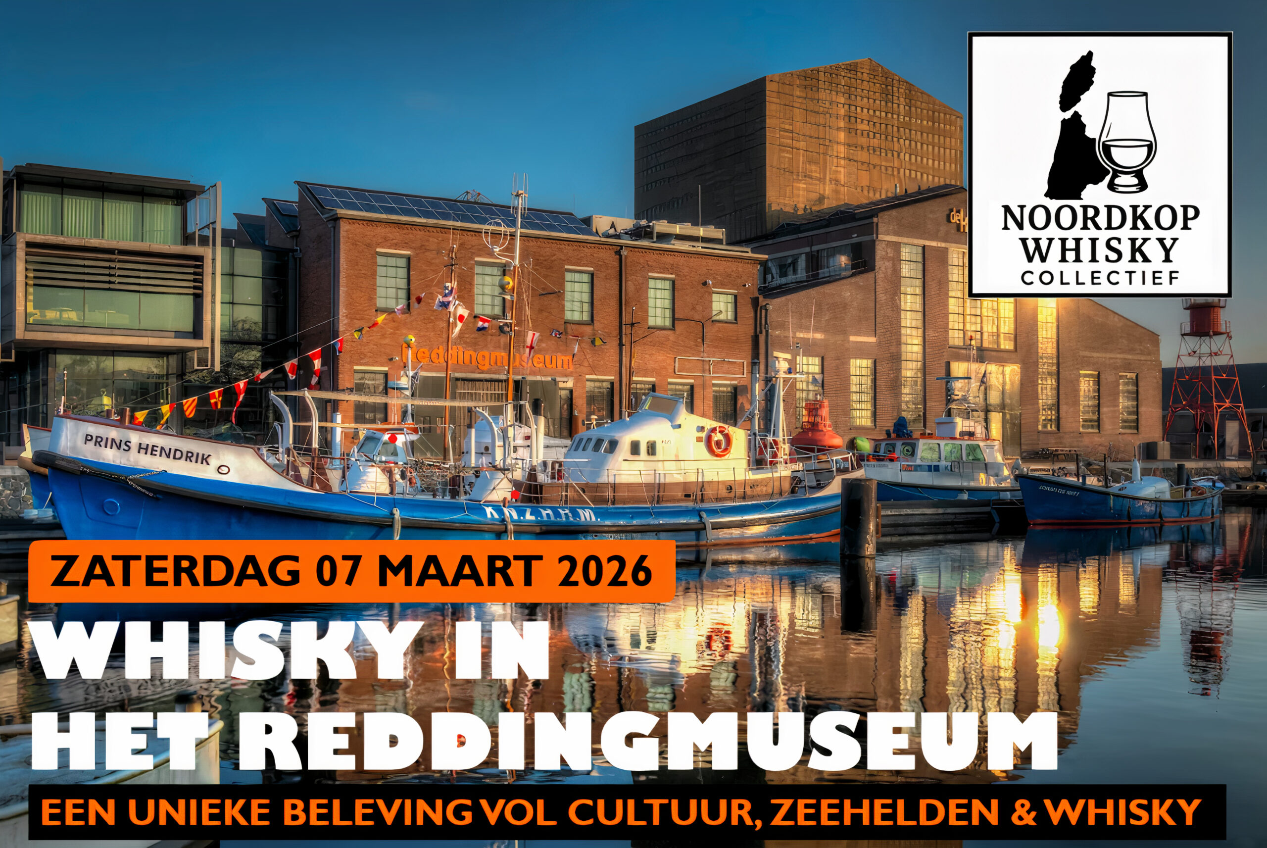 Tussen de reddingsboten, zeehelden en indrukwekkende verhalen van het Nationaal Reddingmuseum Dorus Rijkers neemt het Noordkop Whisky Collectief (NWC) je mee op een smaakvolle ontdekkingsreis.